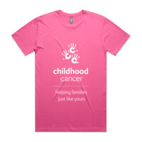 "running for kids with cancer" printed on the back